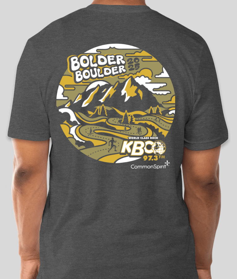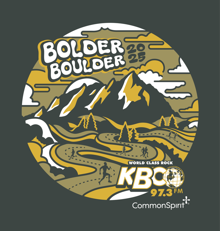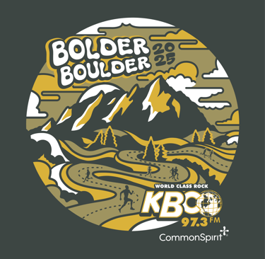 For the 2025 Bolder Boulder tee, the design takes runners on a journey—featuring winding roads, rolling hills, and the ever-iconic Flatirons as the centerpiece. Layered with texture and movement, it captures the spirit of the race and the rhythm of the landscape in one bold, graphic story.
